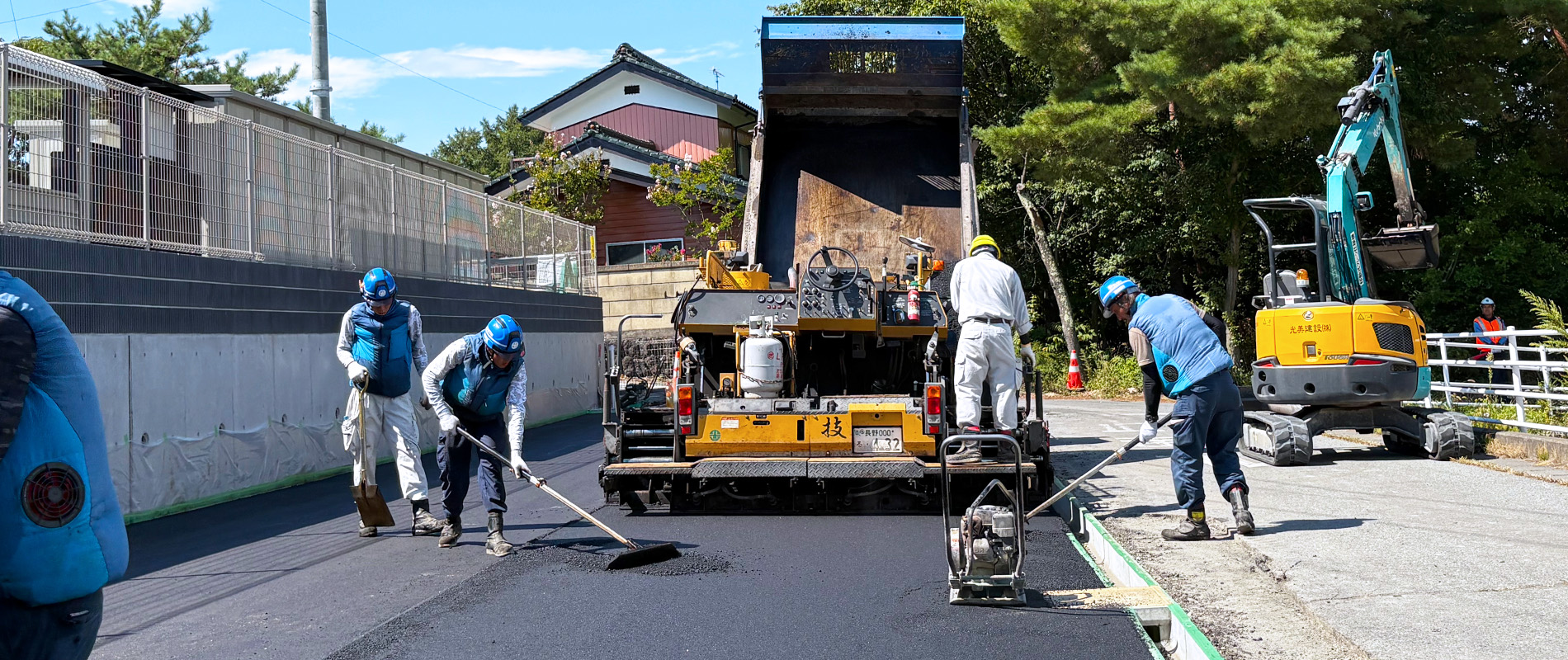 地域の皆さまが安全に利用できる舗装工事から、道路や河川などの基盤整備まで、長年培った技術と経験で事業を遂行しています。